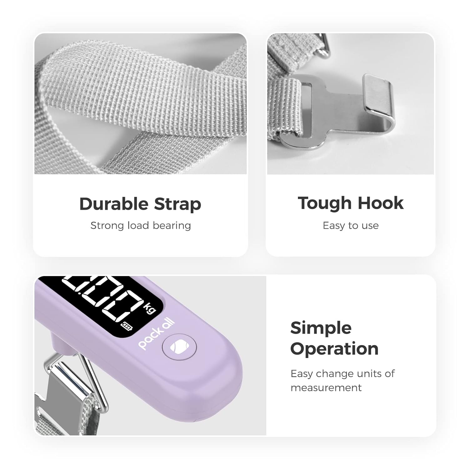 COMPACT – Capacity with 110 lbs/50 kg, 0.1 lb/50 g precision, lb/kg/oz switchable. The digital luggage scale is compact and an ideal friend on every adventure.