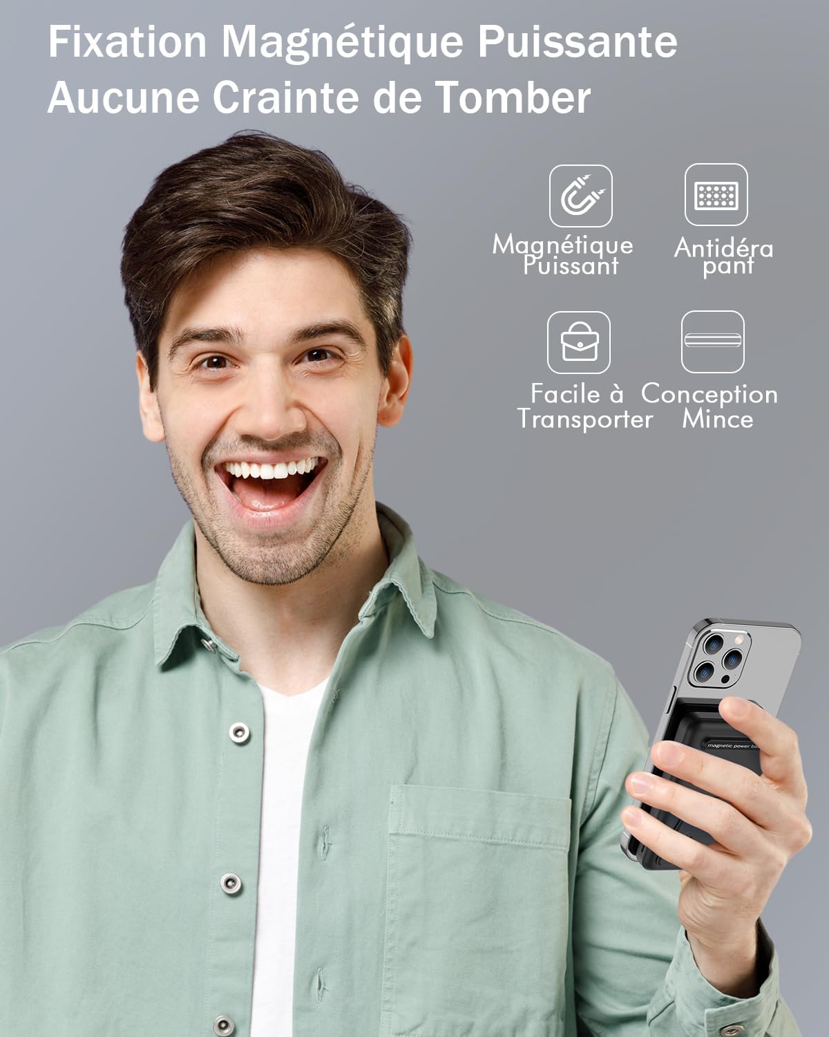 Mini Design Portable Phone Charger: Mini design allows you to easily put the wireless power bank into your pocket or backpack (4.08*2.67*0.85 inches); It will not block the camera during use; Lighter weight (only 0.4 pounds) allows you to easily use it with your iPhone