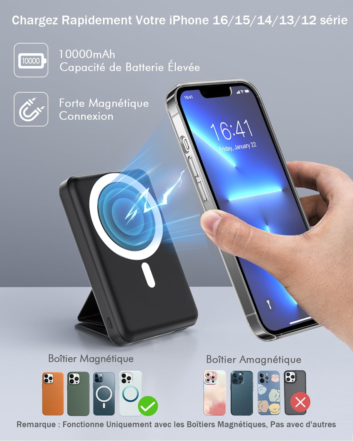 Charging with Magnetic Phone Case: We recommend charging with MagSafe phone case or without cases to get enough suction(Using a non-magnetic phone case will cause the phone to not adsorb properly)