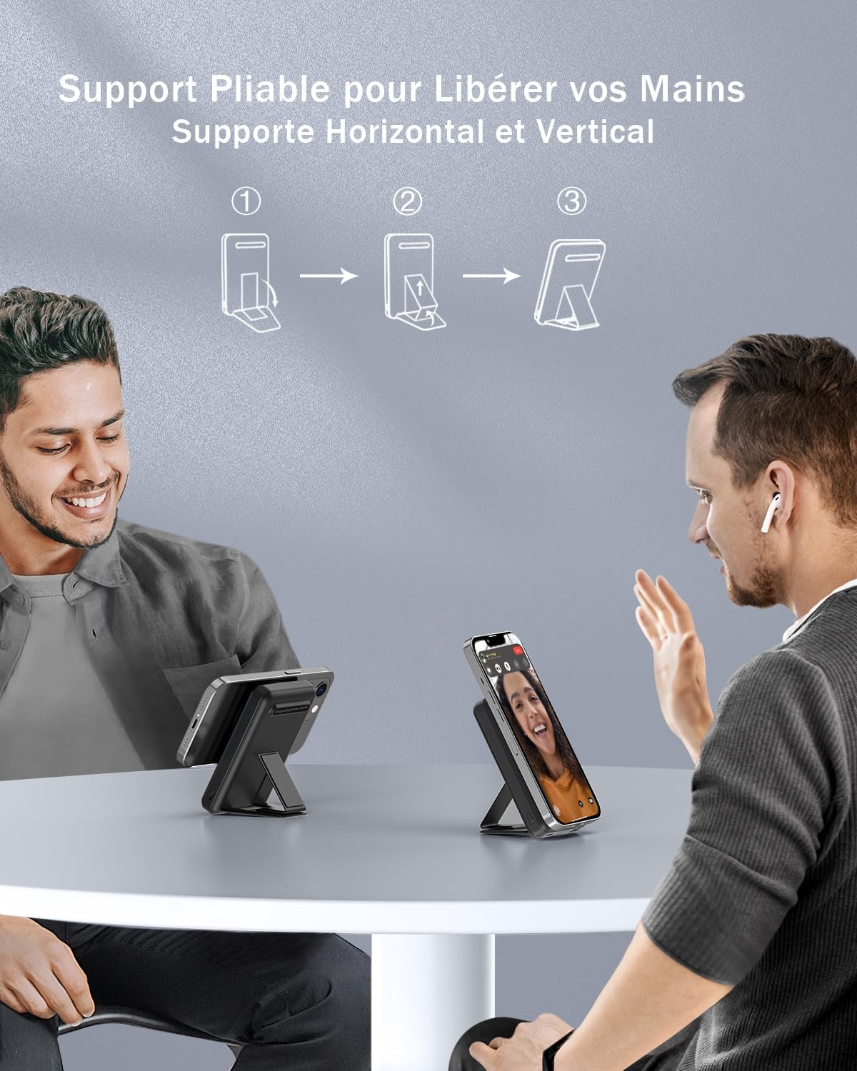 Magic Foldable Stand: The magnetic power bank for iphone has a foldable kickstand to hold your iPhone(horizontally or vertically)for a comfortable viewing angle, even when charging can use the iPhone, no more worrying about charging distance and say goodbye to messy wires. And the portable iphone charger uses soft silicone material to protect your phone from damage while wireless charging