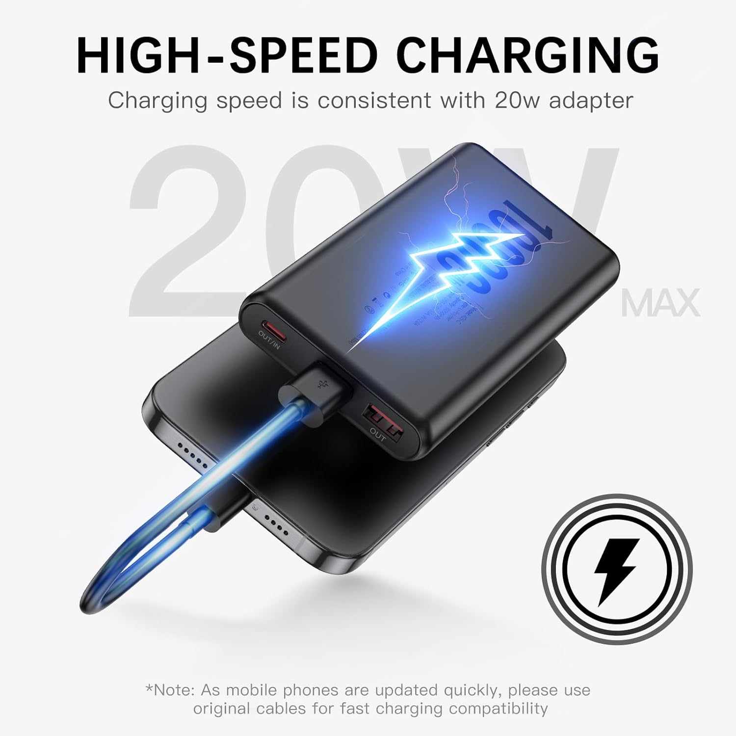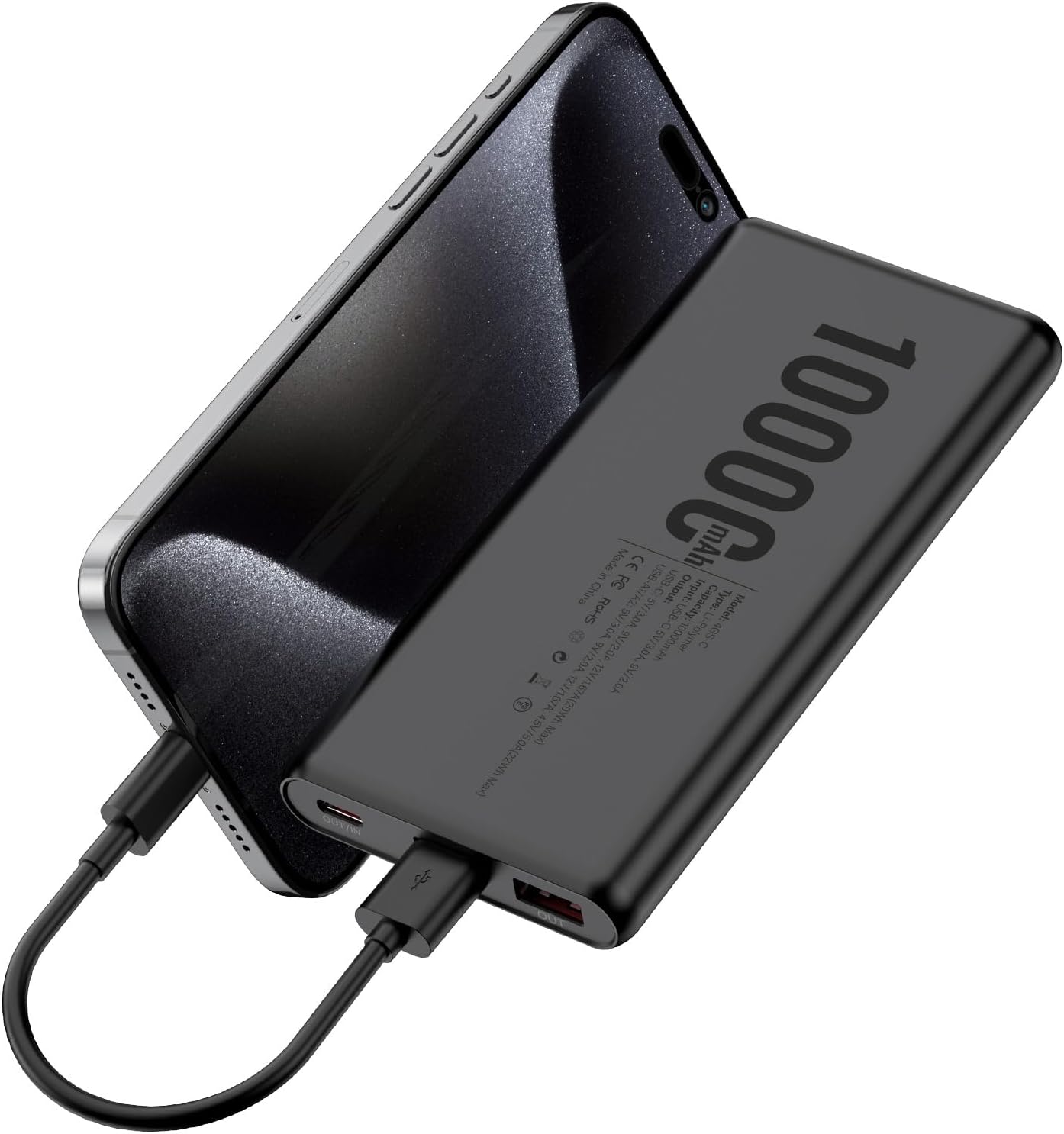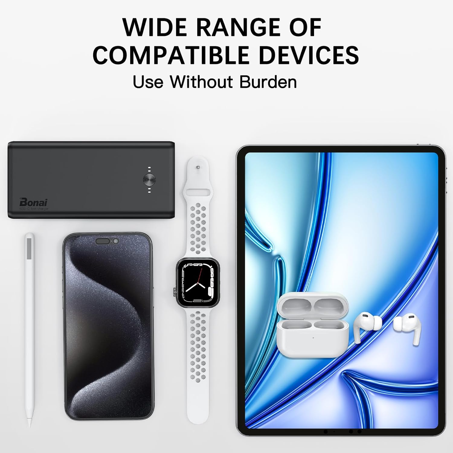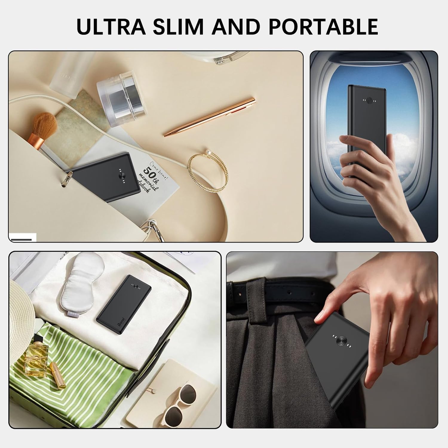 Slim Size, High Power: One of the slimmest and lightest 10,000mAh portable chargers on the market. Owning it will be a pleasant surprise. It can charge an iPhone 15 up to 2.5 times, a Galaxy S22 up to 2.3 times, AirPods Pro up to 15 times, an Apple Watch Series 9 up to 30 times, or a MacBook Pro up to 2 times, and more.