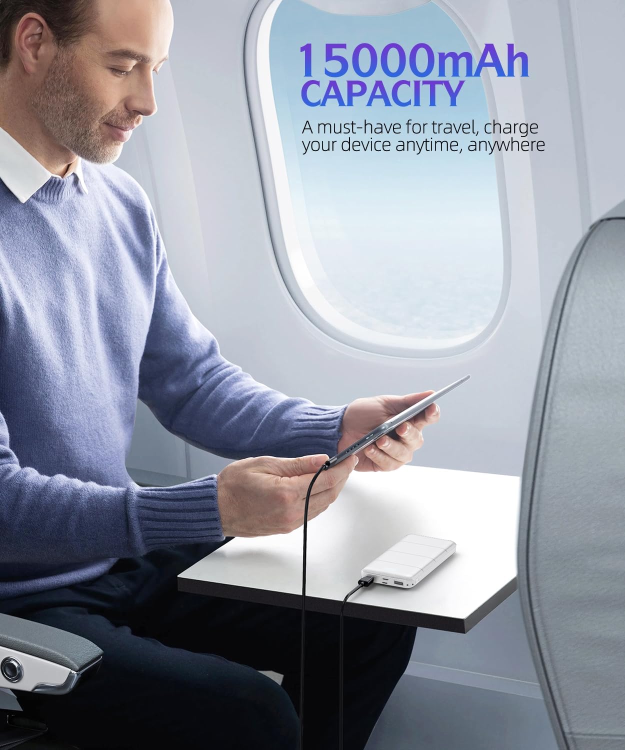 Portable charger has an impressive 15000mAh ultra-high capacity, can provide you with an excellent battery life experience. No more worrying about your phone running out of juice during outdoor activities like hiking. Enjoy a worry-free and wonderful trip with this reliable companion.