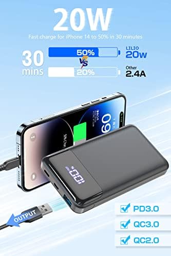 Ultra-Fast Charging – Up to 20W amazing charging speed is twice as fast as ordinary portable chargers, only 30 minutes charge 50% for iPhone 14 to away from long waiting time. Supporting PD3.0/QC2.0/QC3.0/AFC/FCP protocol to provide tailored for different electronic devices.