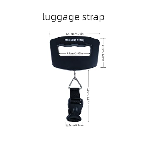 Easy to Weigh, Easy to Carry! 110Lb capacity digital luggage scale precisely weighs suitcases, bags and backpacks with accuracy within 0.1 pound. This simple, easy-to-use scale has a sturdy strap for an extremely accurate measurement of different types of bags. Weight results stay on the screen after stabilization so you can record results. Portable design makes it easy to store at home or take along in your suitcase. A Money Saving Tool for Travel,Never pay unexpected overweight baggage fees again. Why worry about your bags at check-in, being on-the-hook for extra fees and facing the embarrassment of repacking in public? Our Luggage Scale Resolve All of Your Trouble! The compact, lightweight design travels easily without adding significant weight or bulk to your flight or cruise. This scale is durable and heavy-duty to stand the test of time and perfect for the frequent traveler. Ergonomic Pressure Dispersing Design With blue backlit, you can simply lift the luggage up right and look down to read the accurate value,which takes you less strength. And the scale is wide enough to grip with all the fingers to disperse the pressure, bringing a comfortable gripping experience. Features: Material: ABS plastic Conversion units: pounds, ounces, grams, kilograms (easy to convert for international travel) Hook scale with tare function Minimum weight: 0.02Lb/0.01KG Maximum weight: 110Lb/50Kg Product size: 4.7×3.1×1 inches/120x0x25mm Product weight: 0.24Lb/3.84OZ/0.11KG Packaging size: 5.7×5.7×1.3 inches/145x145x34mm Packaging weight: 0.33Lb/5.29OZ/0.15KG Color: Black Powered by 2 * AAA (1.5V) battery (included) Packaging includes: 1 * Digital scale 1 * User manual 1 * Luggage strap