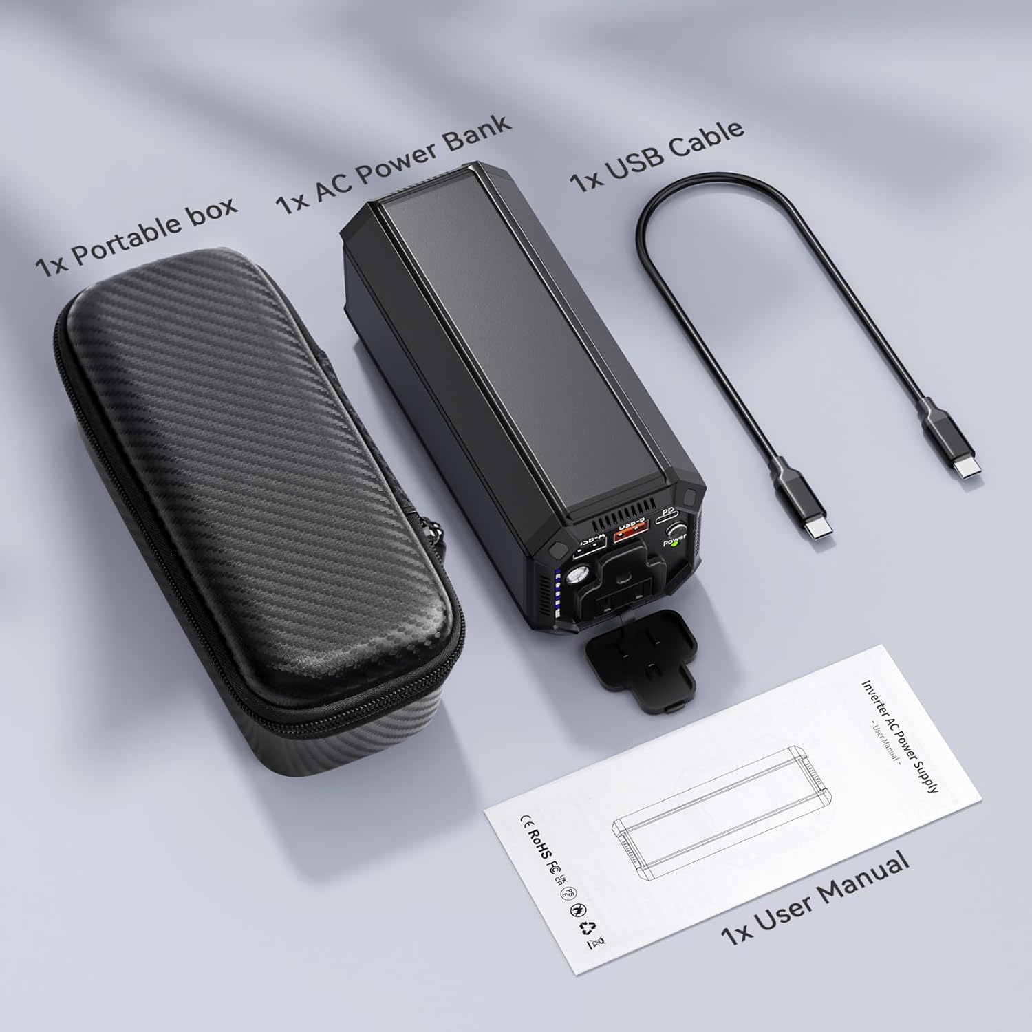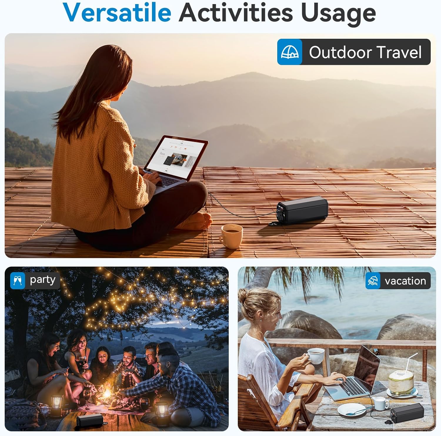 Portable AC Power Bank: The AC outlet up to 100W, which can meet the charging and on-load needs of electrical appliances less than 100W. Don’t worry about wall plugs limiting your power needs, charge your device anytime, anywhere. it is an ideal necessity for outdoor activities, hurricanes and home emergency power outage.