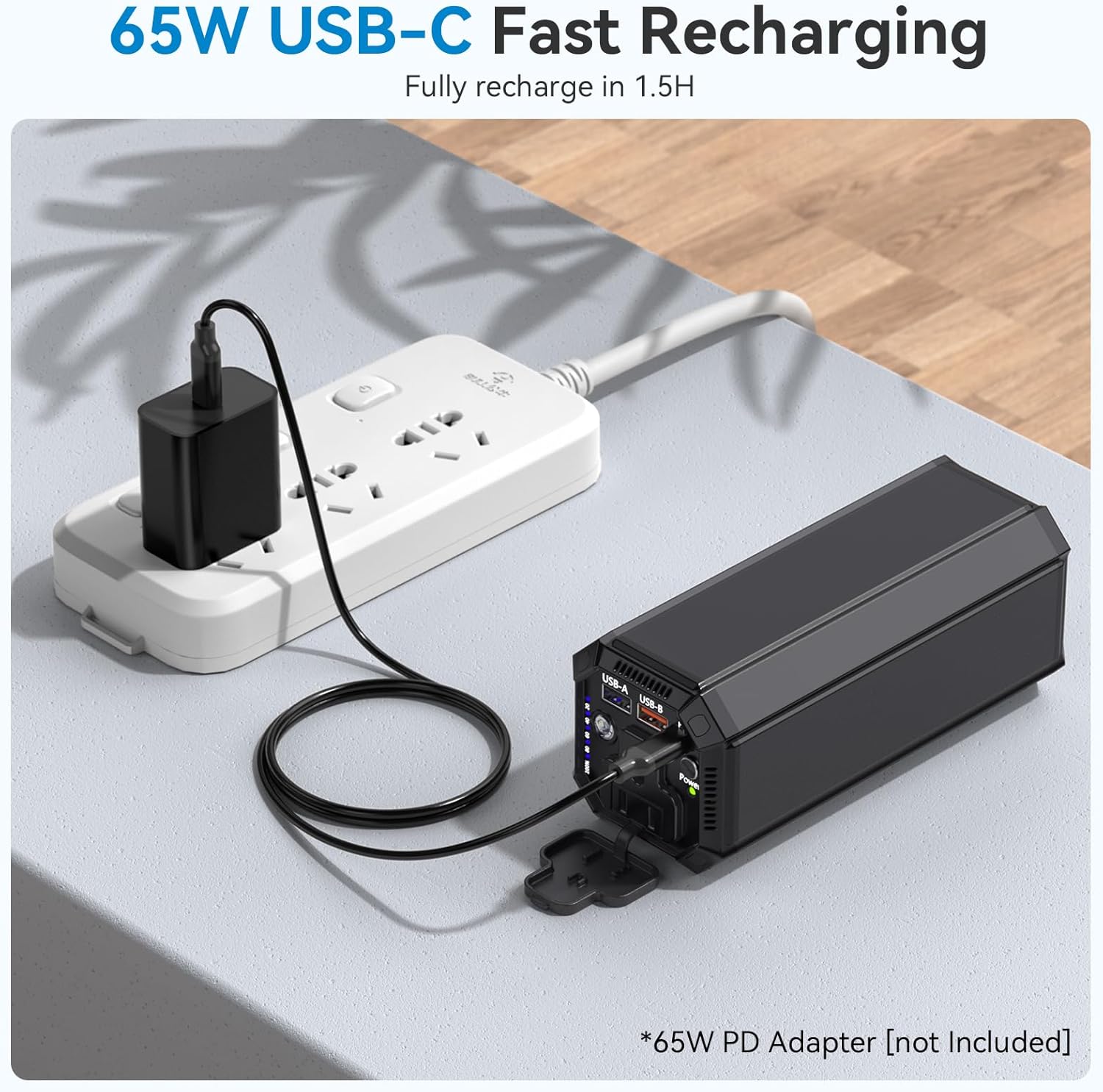 65W PD Output & Input: The PD Type-C port provides 65W output and input, perfect solution for your usb-c devices and charge at the fastest speeds. And its fast recharging capabilities from the Type-C port allows the large capacity power bank to be fully recharged in 1.5 hours, saving your time substantially.