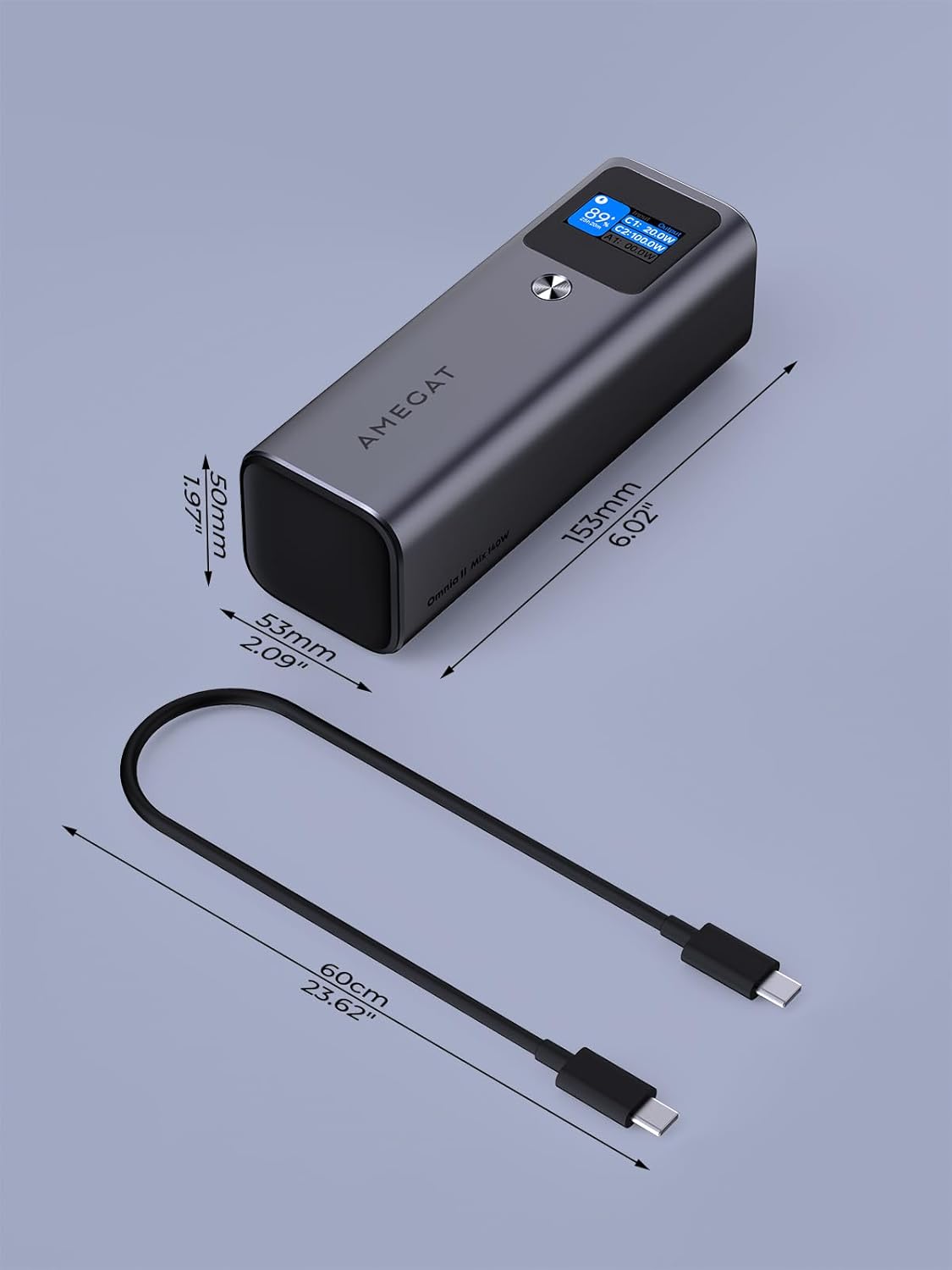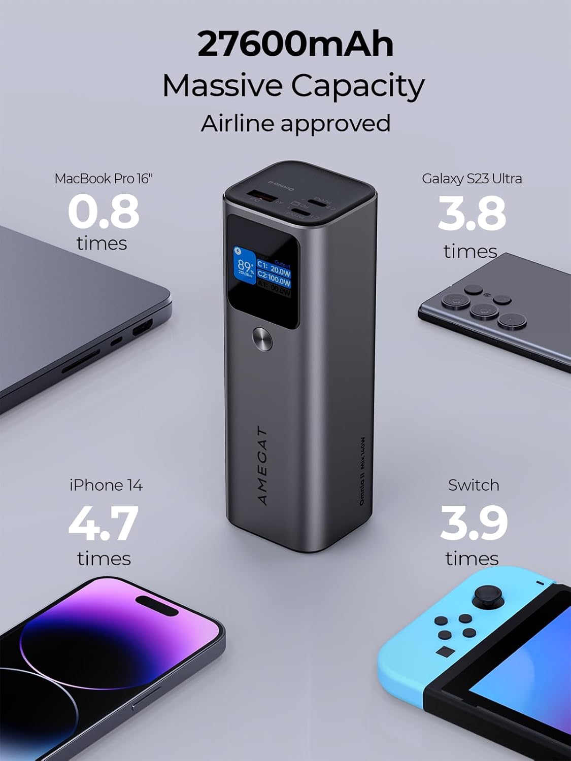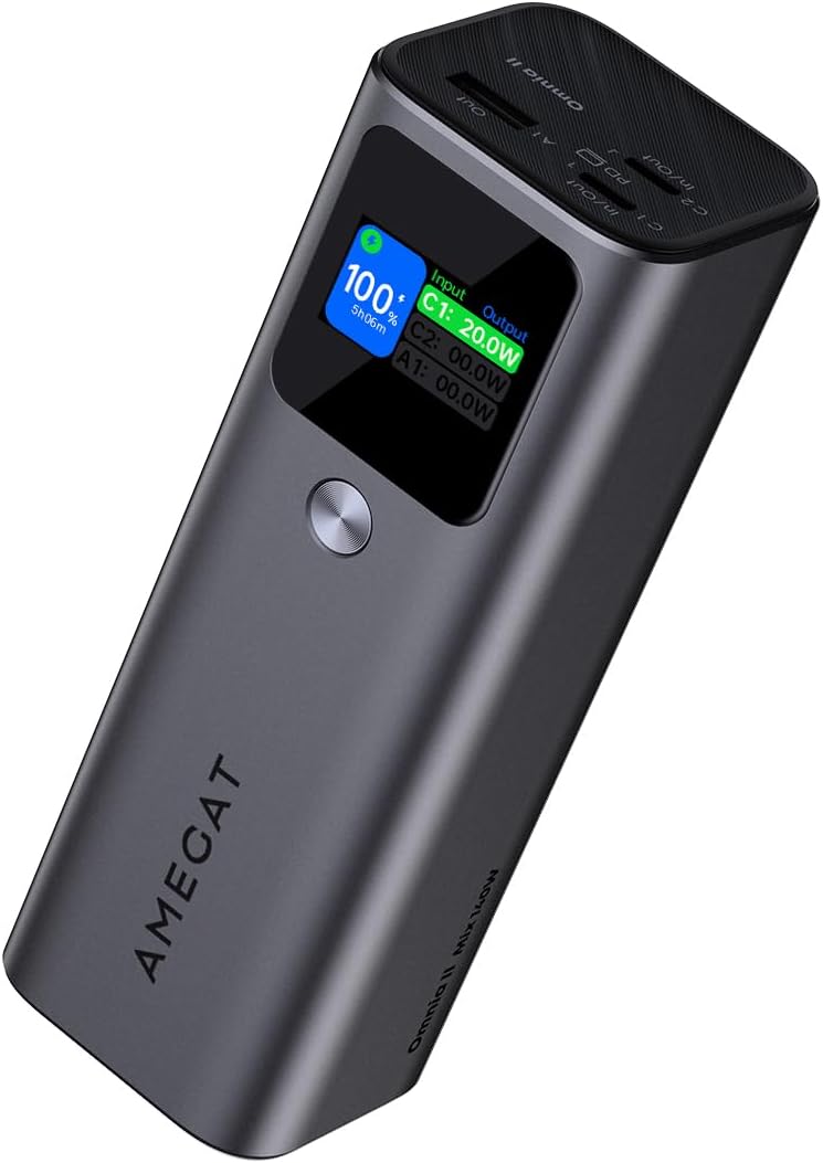 Charge 3 Devices Simultaneously: Equipped with USB-A and 2 USB-C ports, the portable charger lets you charge your laptop, phone, and tablet all at once. Thanks to Omnia II’s exclusive dynamic power distribution feature, all devices charge at optimal speed without any slowdowns.
