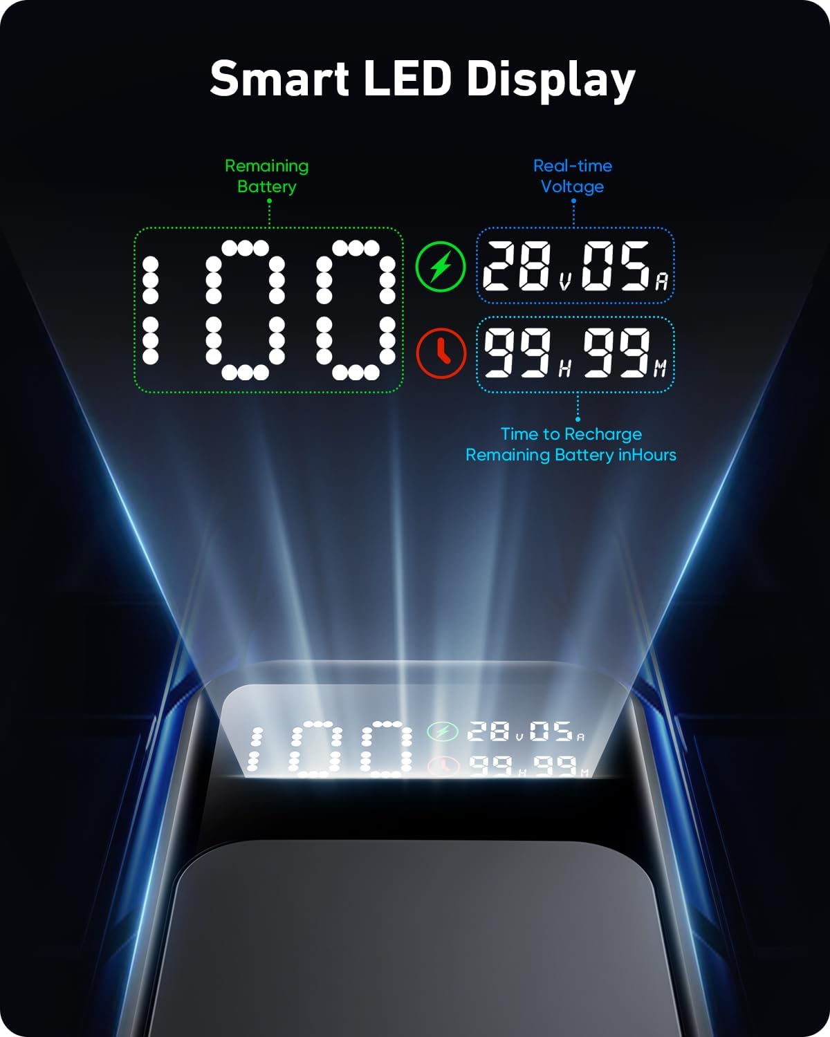 Smart LED Display & Super bright flashlight: The smart digital display on this portable laptop charger provides real-time insights on output/input power and estimates the recharge time, keeping users informed and their devices ready.This laptop portable charger is also equipped with a super bright flashlight. With 4 modes, it can help you light up the darkness. Perfect companion for power outages, night walks, reading and emergencies.