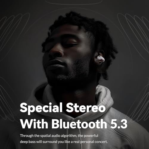 [Powered by Bluetooth 5.3] Powered by the latest Bluetooth 5.3 technology, our clip on Bluetooth headphones offer a stable connection with ultra-low latency, ensuring your audio and video are always in sync. Experience immersive sound through our Spatial Stereo Audio Algorithm, designed to deliver rich, three-dimensional audio landscapes.