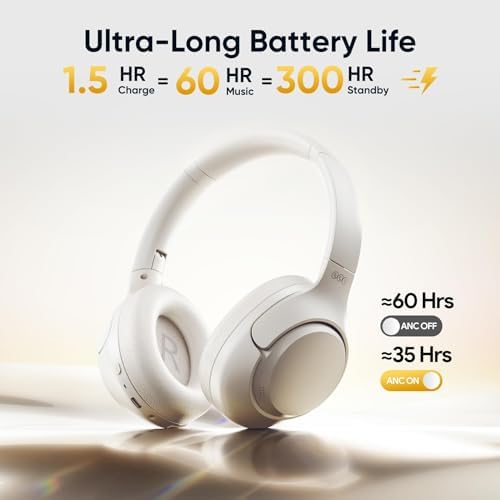 【60-Hour Playtime】QCY H3 wireless headphones provide over 60 hours of playtime in ANC OFF mode. The standby time is over 350 hours at full charge, and it comes with a 3.5mm audio cable for switching to wired mode anytime, so you don’t have to worry about running out of battery.