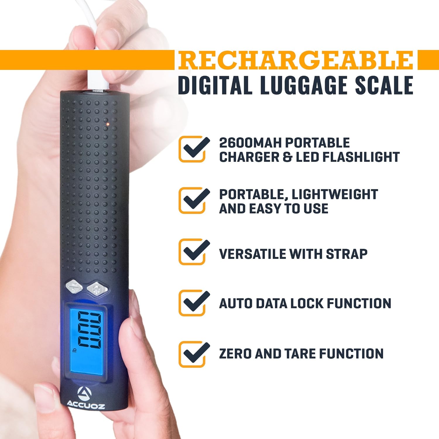 Rechargeable Digital Luggage Scale – 2600mAh Portable Charger & LED Flashlight