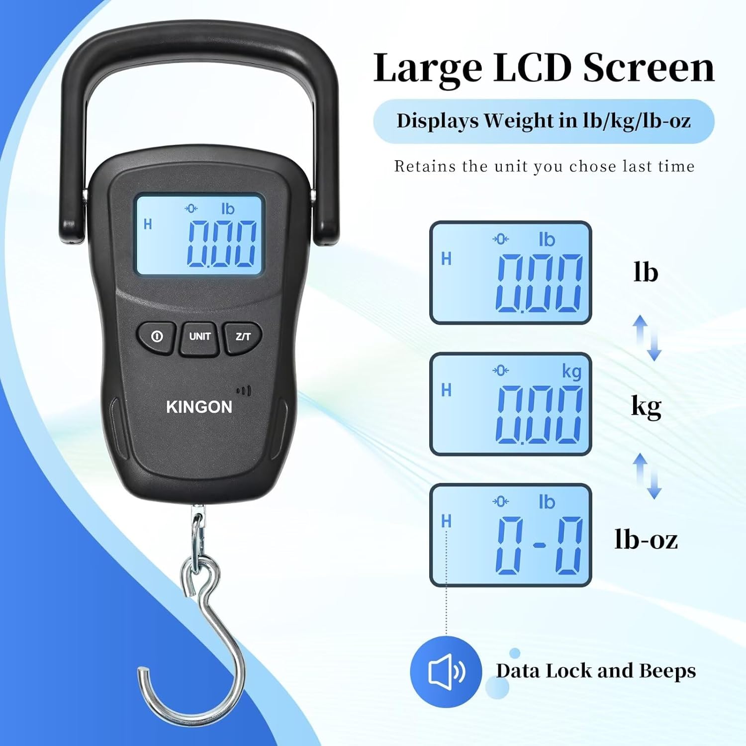 Easy to Use – This digital luggage scale has a 3.3 inches wide plastic coated steel handle, durable and comfortable to grip; Large backlit LCD display for easy reading in any light condition; Low battery indication; Hold function could be turned off if needed.