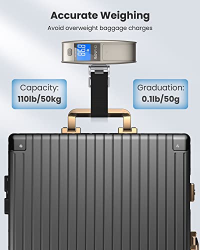 Avoid overweight fees. The suitcase scale features high-accuracy sensors for precise measurement with a capacity of up to 110lb/50kg and a graduation of 0.1lb/50g.