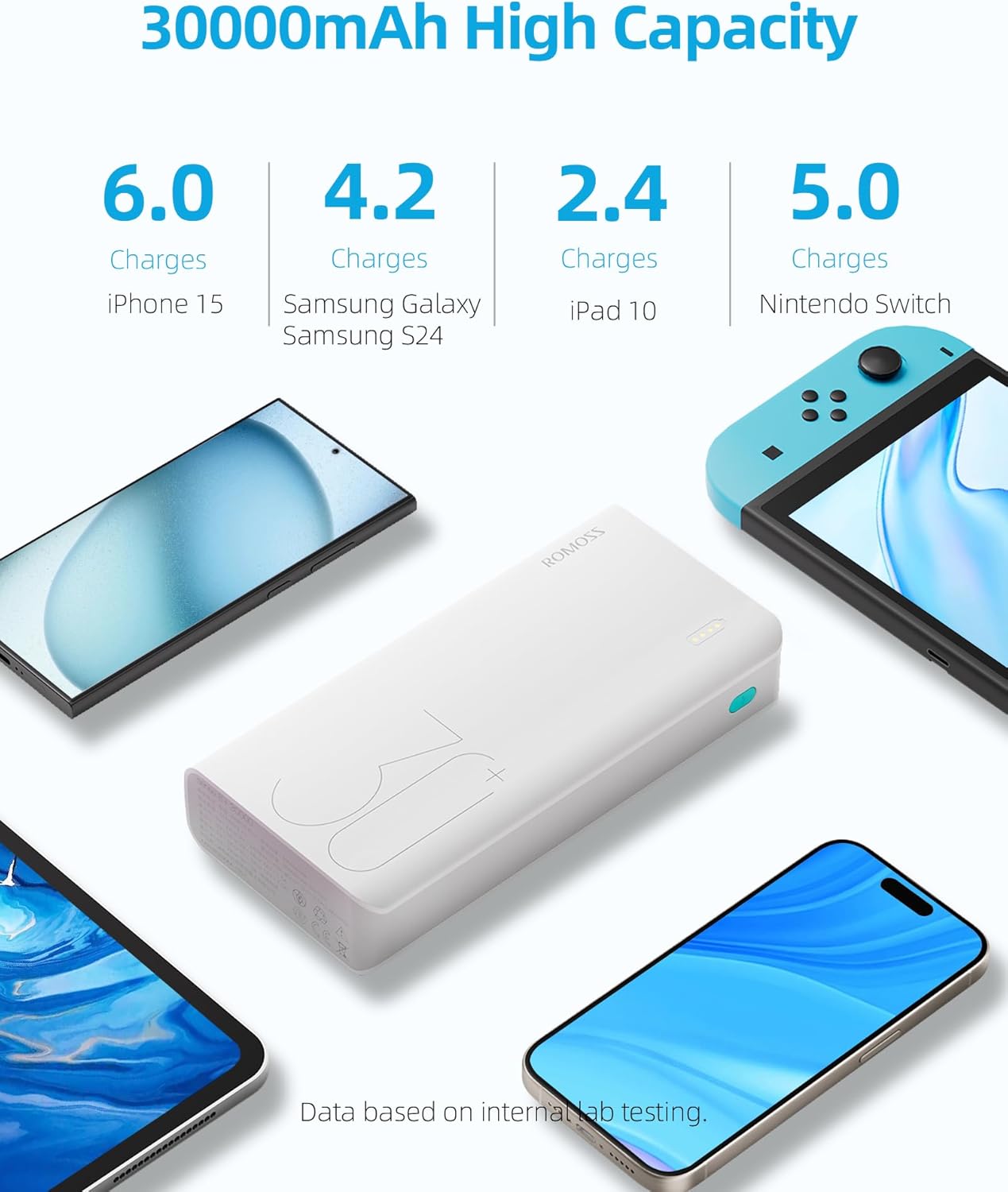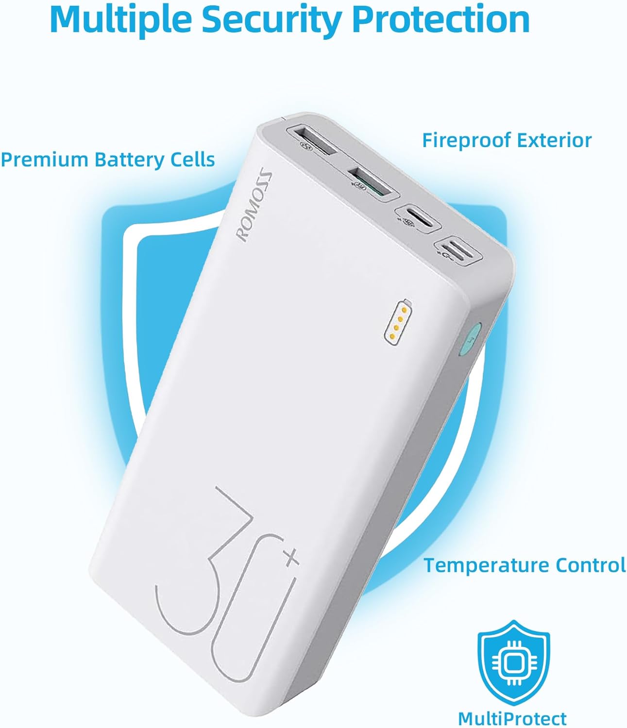 Assured Quality and Safety: UL, CE, RoHS, and FCC certified, ROMOSS powerbank protects against overcharge, overvoltage, and short circuits, ensuring device safety during charging