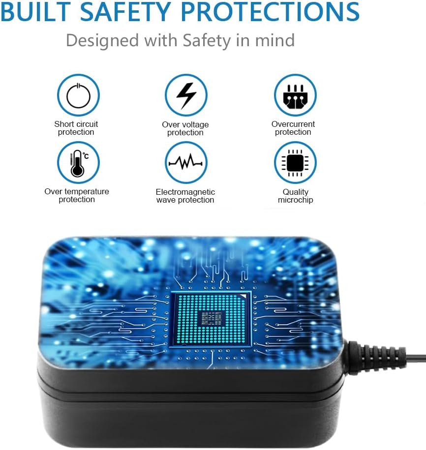 Built-in multiple safety protection systems. Automatic over voltage cut-off, over current cut-off, over temperature cut-off, short circuit cut-off. We focus on producing premium quality and safety power adapters. No noise, no spontaneous combustion, no explosion, no fire hazard, safe to use. 6ft long power cable makes it convenient to use.
