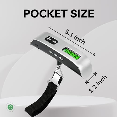 Travel with confidence using the Portable Digital Best Luggage Scale. With a robust 110lbs capacity and precise 0.1-pound graduation, this digital scale accurately measures your luggage, suitcase, and bags. The backlight LCD display ensures easy reading in dim light, while the data lock function allows you to leisurely check results after luggage stabilization. The auto-off feature conserves battery energy, complemented by low battery and overload indicators. Enjoy hassle-free weighing with the accurate tare function and date hold feature, making it versatile for travel, postal, home, and outdoor use. The scale, complete with a CR2032 battery, is ready to use straight out of the box. An ideal gift for travelers, it’s designed to save you from unexpected overweight bag fees, helping you prepare for your upcoming journey.