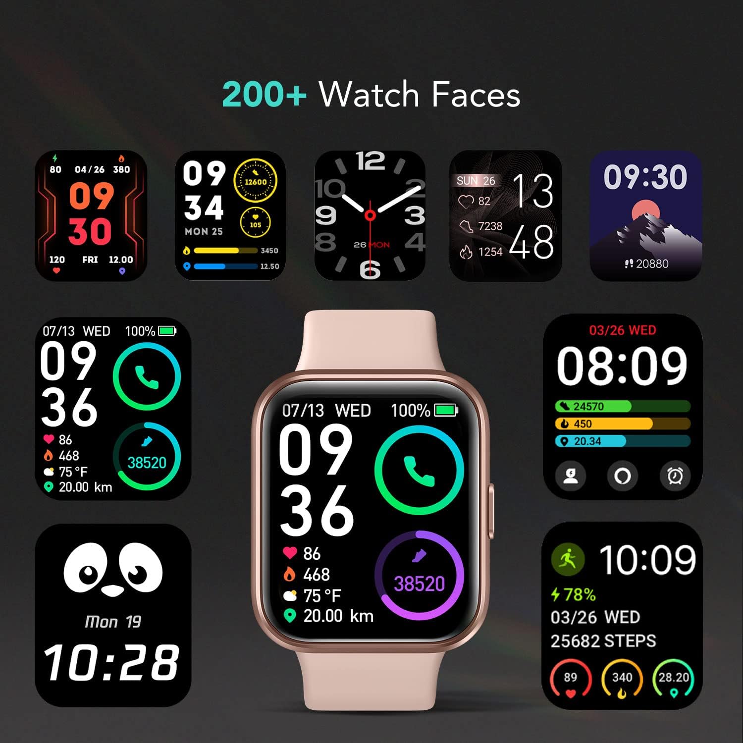 ✅【 24/7 ALL-ROUND HEALTH TRACKING】Adopted high-performance optical sensors, the smart watch for android and iphone will timely and precisely work as a fitness tracker to record your daily walking steps, distances, calories, continuously monitor your heart rate, blood oxygen, stress and sleep quality with detailed data-based presentation to analyze and remind your body status and trend from your wrist, give you advice to help you adjust the lifestyle.
