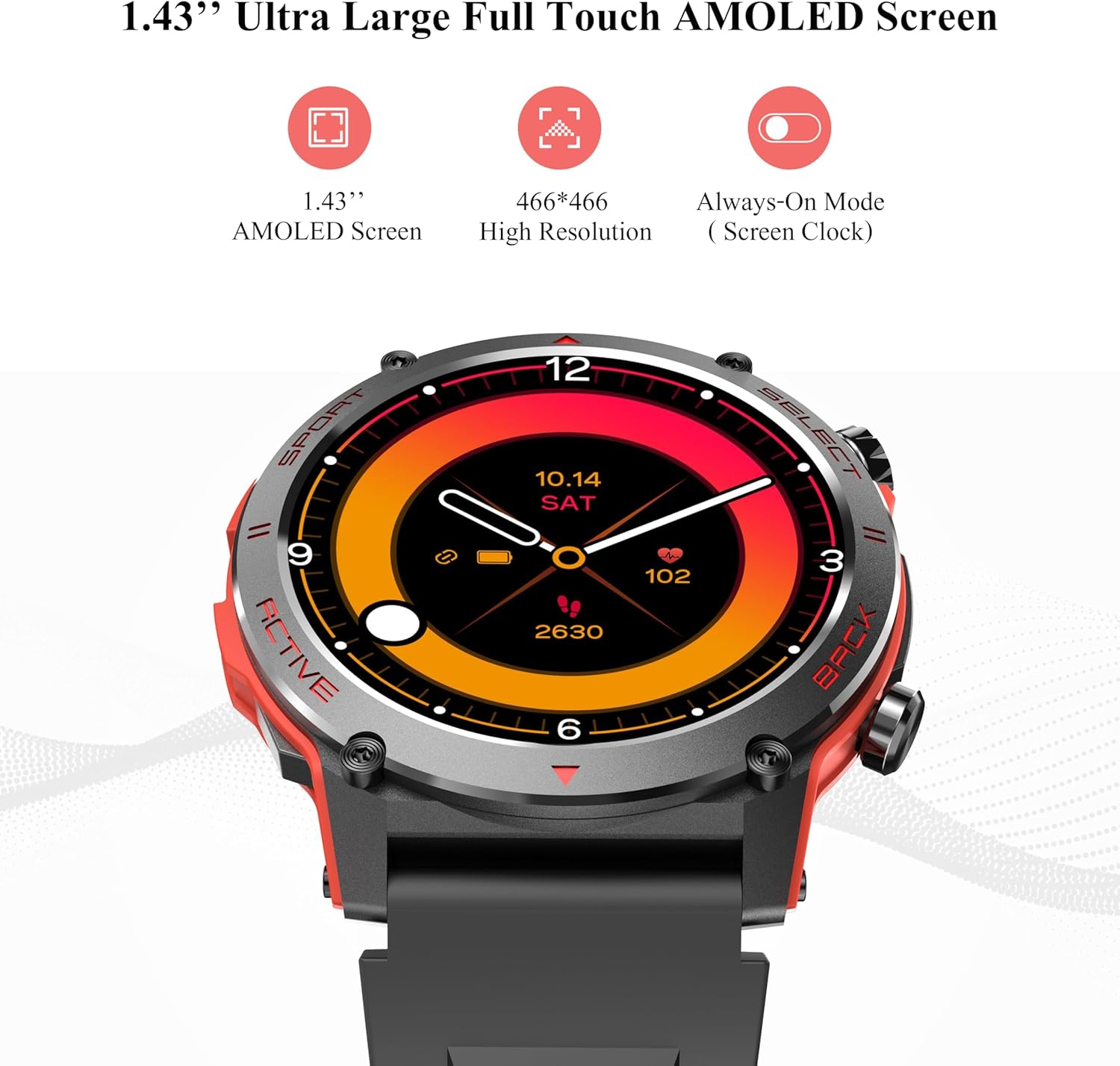 Stylish Blend of Tech & Fashion: This round smartwatch features a striking color-contrast design and a vibrant 1.43-inch AMOLED display. It offers an always-on display for convenient time viewing, and with a 280mAh battery, ensures over 8 days of continuous use and up to 20 days in standby mode after just 2 hours of charging. Water-resistant with an IP68 rating, suitable for daily wear 𝐛𝐮𝐭 𝐧𝐨𝐭 𝐟𝐨𝐫 𝐬𝐰𝐢𝐦𝐦𝐢𝐧𝐠, 𝐬𝐡𝐨𝐰𝐞𝐫 𝐚𝐧𝐝 𝐬𝐚𝐮𝐧𝐚. 𝐅𝐨𝐫 𝐭𝐡𝐞 𝐟𝐢𝐫𝐬𝐭 𝐮𝐬𝐚𝐠𝐞, 𝐩𝐚𝐢𝐫 𝐭𝐡𝐞 𝐰𝐚𝐭𝐜𝐡 𝐰𝐢𝐭𝐡 𝐀𝐏𝐏 𝐭𝐨 𝐜𝐨𝐦𝐩𝐥𝐞𝐭𝐞 𝐛𝐚𝐬𝐢𝐜 𝐬𝐞𝐭𝐭𝐢𝐧𝐠𝐬, 𝐬𝐮𝐜𝐡 𝐚𝐬 𝐭𝐢𝐦𝐞 & 𝐝𝐚𝐭𝐞.