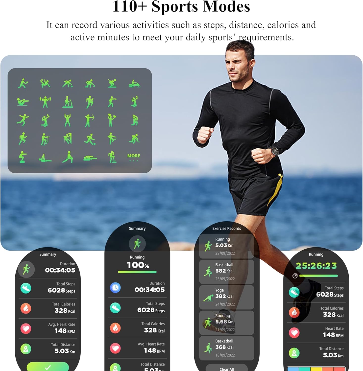 Stay Informed About 24/7 Your Health: This advanced activity tracker watch monitors heart rate, blood oxygen, blood pressure, stress, and sleep, with comprehensive analysis via Da Fit APP. With 110+ sports modes, it’s a versatile sport watch for all exercise needs. It doubles as a pedometer, step counter, and fitness tracker, accurately recording steps, calories, distance, and workout duration. Adjust brightness and screen-on time for outdoor activities.