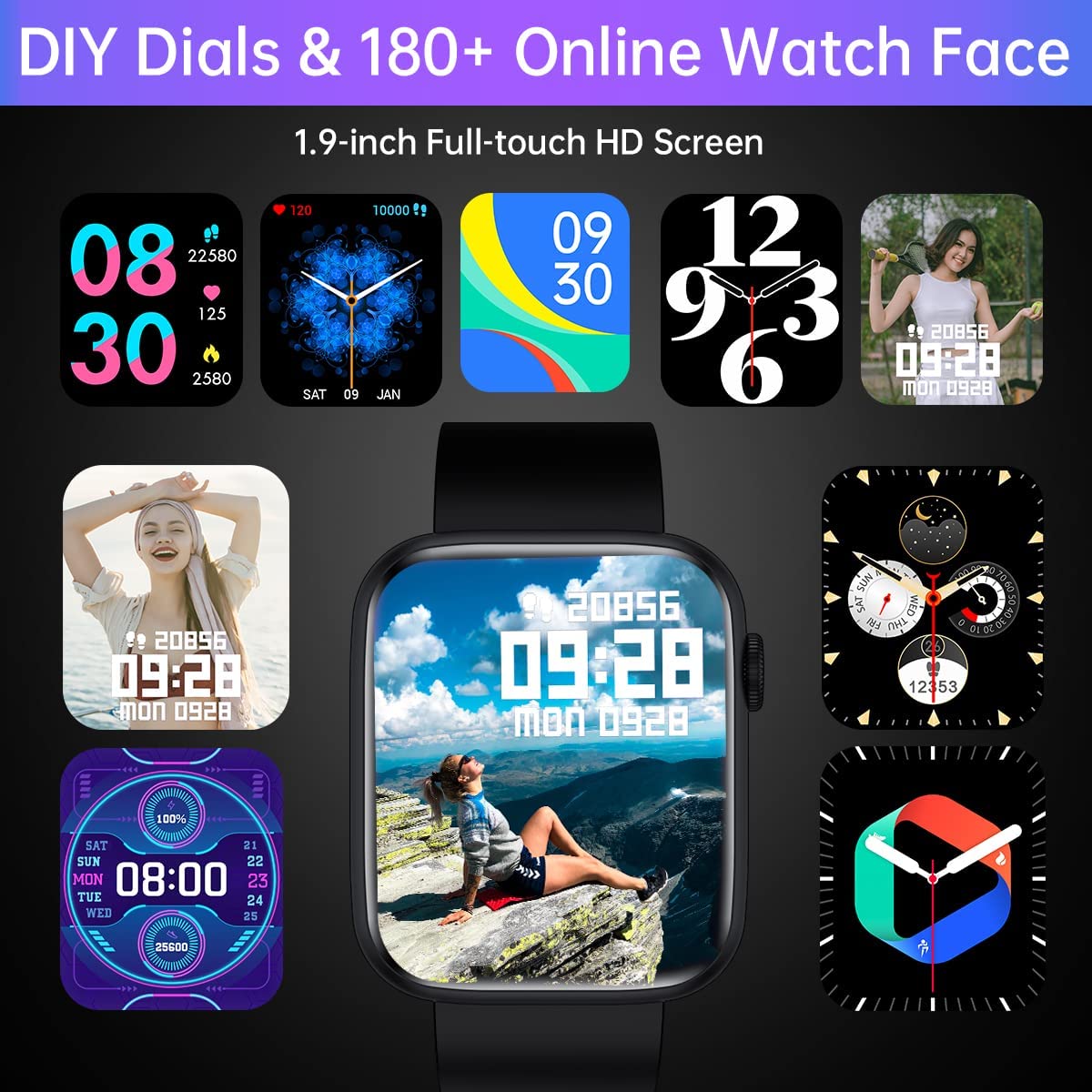 Smart Watch, 1.9" Full Touch Screen Smart Watch for Android & iOS Phones with Heart Rate & Blood Oxygen Monitor, 123 Sport Modes,Voice Assistant, Fitness Smart Watch for Women Men