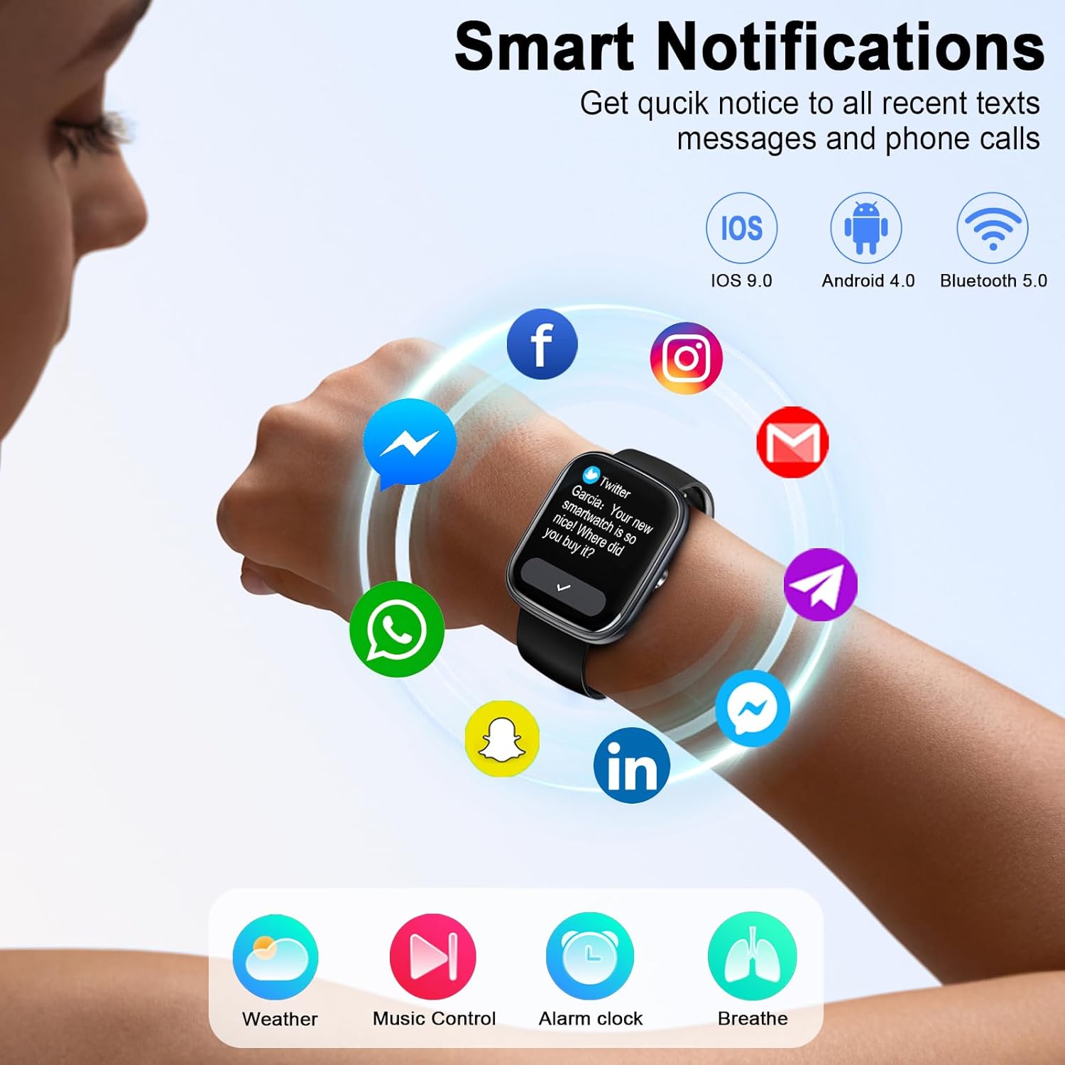 Multifunction and Compatibility: Enjoy the convenience of the voice assistant, this fitness watches for women has many practical features, such as alarm clock, women’s health, stopwatch, timer, camera control, find your phone, calculator, music control, weather forecast, calendar, brightness adjustment, breath training, phone search, etc. This smart watch is compatible with most iOS 8.0 & Android 4.4 or higher smart phones (Not for PC or tablet)