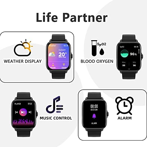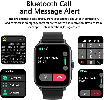 【Smart Watch Bluetooth Call and Smart Notification】 After connecting the watch with your phone, you can directly dial the phone number on the screen to make or answer the call. Also you can receive SMS and APP messages (Text, Facebook, WhatsApp, Instagram, Twitter…) you won’t miss any important information.