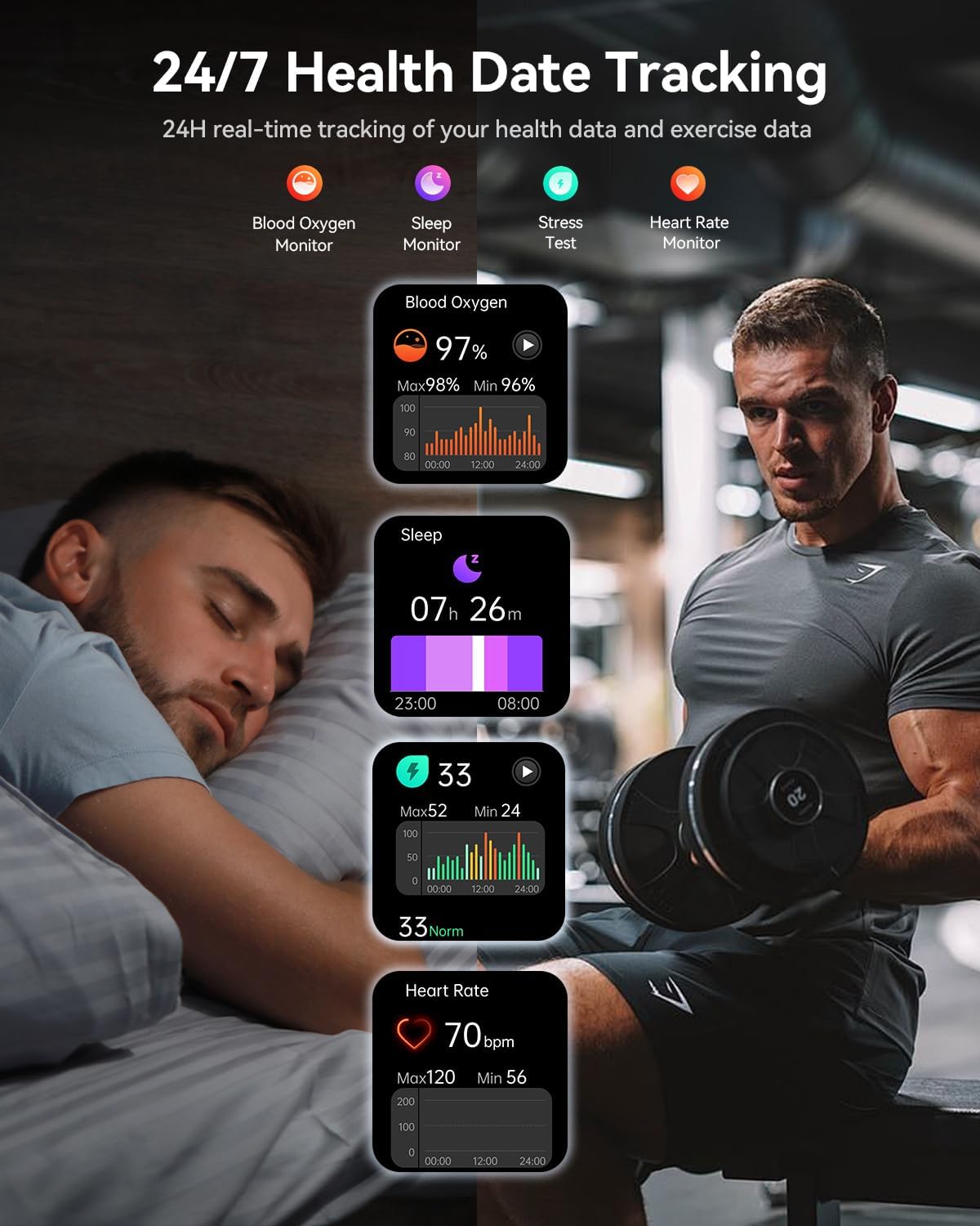 【24/7 Health Monitoring】 Experience comprehensive health tracking around the clock with real-time monitoring of your heart rate, blood oxygen and stress levels. Gain deep insights into your sleep patterns through detailed sleep monitoring, understanding different sleep stages, and receiving scientific sleep analysis. Kieslect health monitoring smartwatches also includes female health tracking features.