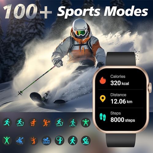 Smart Watch (Answer/Make Call), 2024 Newest 2.0 Inch Fitness Tracker, AI Voice Assistant/Sleep Monitor/Pedometer/Calories, 100+ Sports Modes, Fitness Watch for Women Men (Gold)