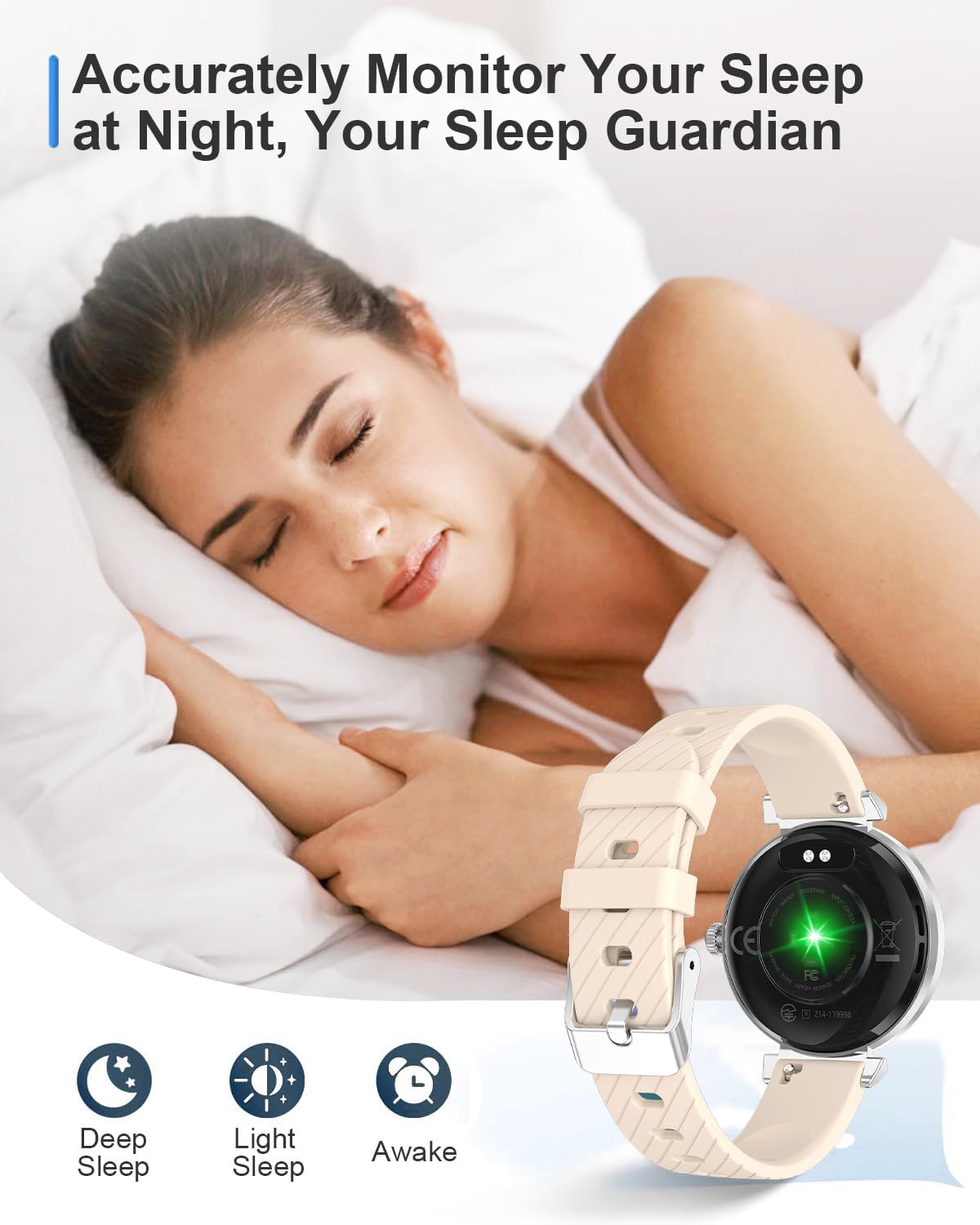 Health Monitoring – women’s watches equipped with advanced sensors, can monitor blood oxygen, blood pressure and heart rate in real time 24/7. It also provides nighttime sleep monitoring to help you improve your sleep habits. In addition, the women’s smartwatch also has a breathing training function that allows you to easily relieve stress, adjust your lifestyle in time and maintain your health.