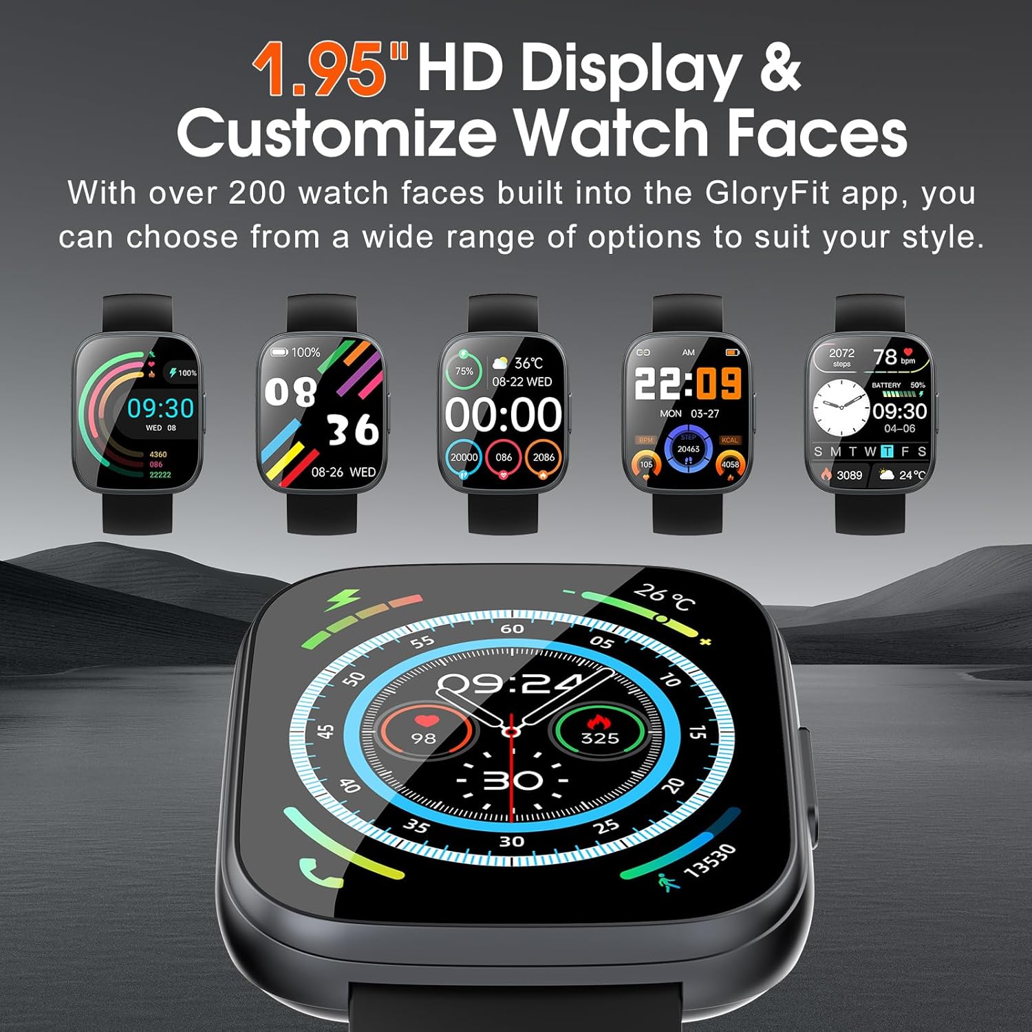 1.95-inch Touch Screen and Personalized Watch Face: Smart watches for women men is equipped with a new generation 1.95-inch high-definition touch screen, which greatly improves color quality and touch response speed, allowing you to easily browse its various functions. There are up to 200+ watch faces for you to choose from in the “Gloryfit” app, and you can even customize the watch face wallpaper with your favorite photos.