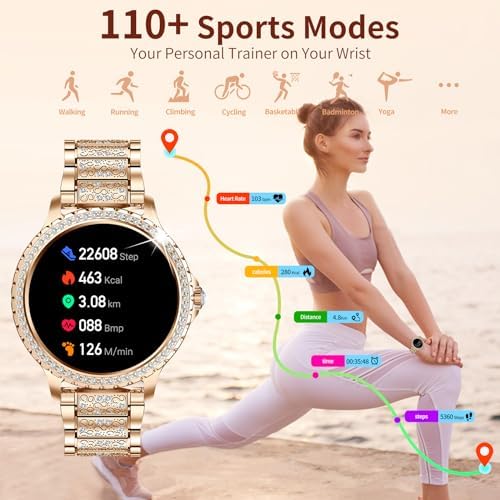 💎To Make Healthy Lifestyle scientifically:Smart watch for women supports 24/7 heart rate monitoring,as well as blood pressure and blood oxygen monitoring,which can keep track of your time asleep and provides a comprehensive analysis of sleep quality (deep sleep,light sleep and awaked).The smart watch features 19 sports modes, and can be used to monitor critical data such as count steps, check calories burned, and distance traveled.