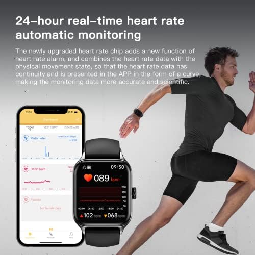 【24-Hour Health Monitoring/Multiple Sports Modes】The upgraded smart watch gives you 24-hour real-time heart rate and records all-day activities such as steps, calories burned, miles walked, minutes of activity. It also supports multiple exercise modes and tracks all your workout distances and fitness during exercise. Learn more about your health!