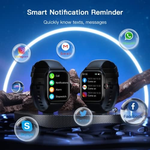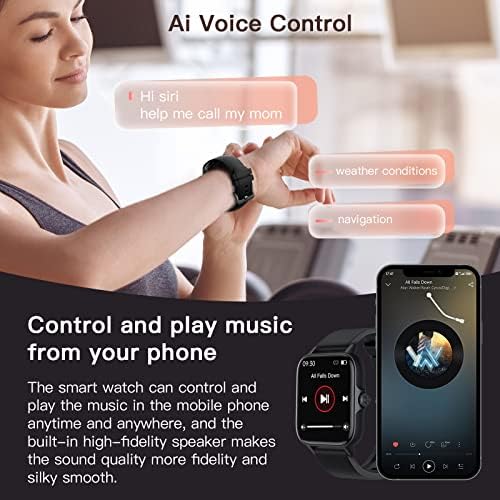 【Smartwatch Compatibility for Android iOS Phones】The smartwatch is compatible with iOS 9.0 and above or Android 4.0 and above smartphones. With Ai voice assistant, SMS notification reminder, music playback, multiple sports monitoring, female physiological monitoring and reminder, weather forecast, IP67 waterproof life, remote control photography, sedentary reminder, calculator, alarm, stopwatch, timer.