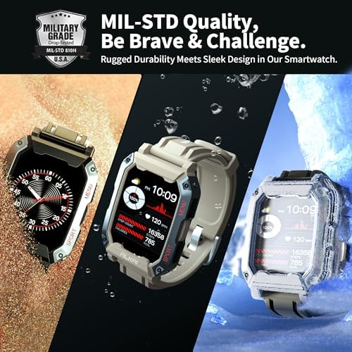 Military Standard Validation – Our rugged men’s smartwatch has undergone rigorous tests in extreme conditions, ensuring its durability and reliability. Crafted from a special composite material and encased in robust metal, this timepiece is as tough as they come. It has been subjected to low-temperature, high-temperature, salt spray, waterproof, and dust resistance tests, making it the perfect companion for swimming, diving, hiking, climbing, skiing, and other outdoor pursuits. With its rugged design and unwavering performance, this fitness watch is ready to conquer any adventure you embark on