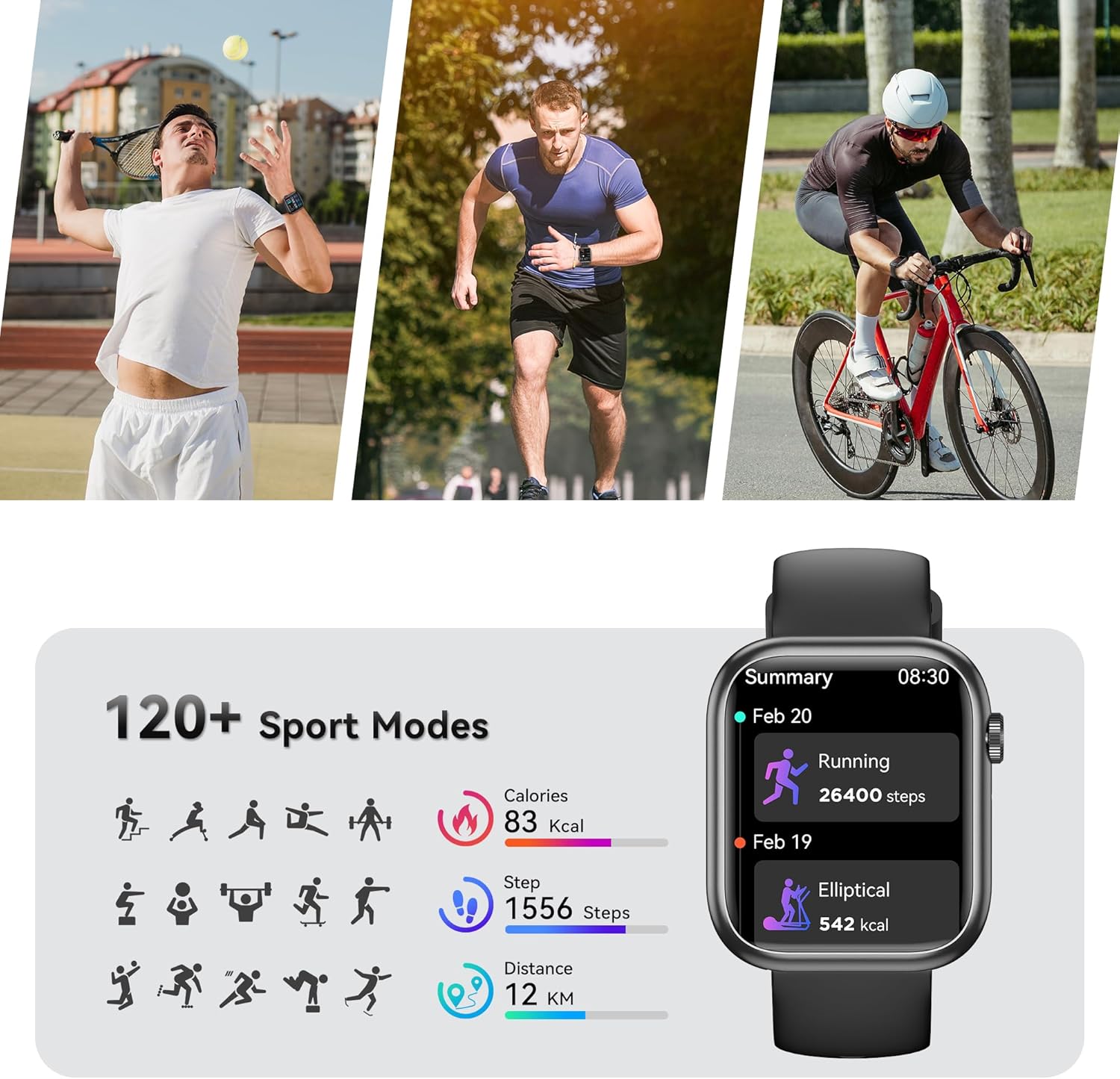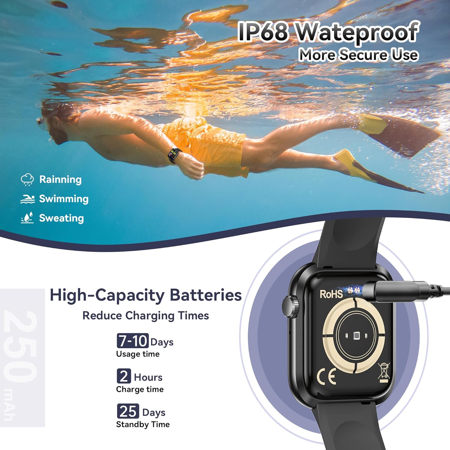 🔋Long Battery Life & Multiple Functions: This sports watch only takes 2 hours to fully charge, can be used for up to 10 days after fully charged, and has a standby time of more than 30 days. At the same time, you can also enjoy additional functions such as pedometer, stopwatch, alarm clock, music control, camera control, voice assistant, etc., making it your perfect life assistant.