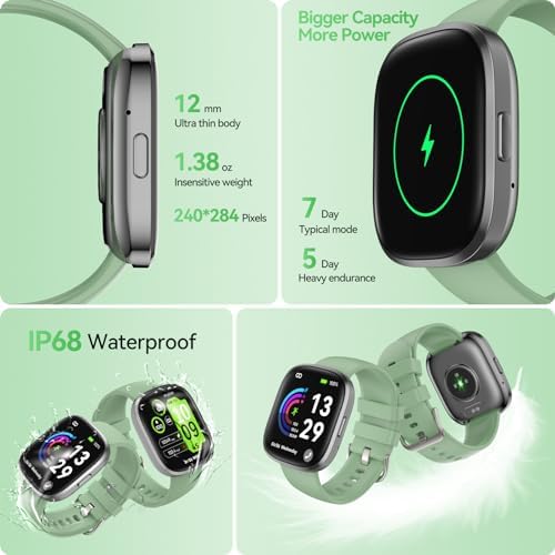 【Upgrade 1.83″ Large HD Touch Screen】Boasting a 1.83” HD display and 240*284 resolution provide more perfect color saturation and operational smoothness. Smart watches for men women with its thin and lightweight design, weighing just 1.38oz, and an improved silicone strap, enjoy exceptional comfort while wearing the digital watch all day.