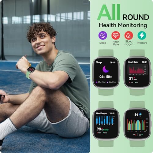【Health Monitoring & Real-time Fitness Tracker】The heart rate watch provides heart rate blood oxygen monitor, tracking calories, steps, distance, and workout time, and keeping track of your workout; equipped with advanced sensors, automatic sleep monitoring for comprehensive sleep analysis (wakefulness, light sleep, deep sleep). Pressure Score management makes informed decisions about your health status and adjusts your lifestyle accordingly.