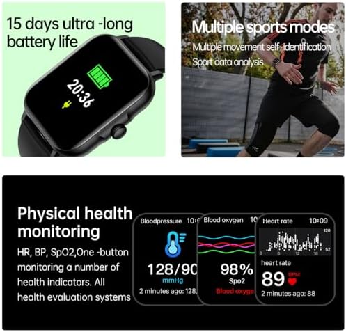 ⌚【100+ fitness modes and IP67 waterproof】- The fitness smartwatch offers 100+ fitness modes like running, hiking, jumping jacks, sit-ups, cycling, and more. During your workout, the smartwatch will record your data in real time, such as heart rate, steps, calories, exercise distance, and exercise time. The fitness tracker is IP67 waterproof, so you can wear it in the rain, while washing your hands, in the shower.