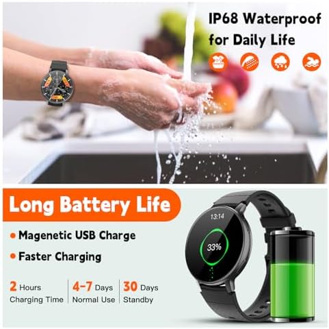 High Compatibility & Long Battery Life: The smart watches for women and men is compatible with iOS 9.0, Android 5.0 and above. It charges quickly and only takes 2 hours to fully charge, providing about 7 days of continuous use and 30 days of standby time.