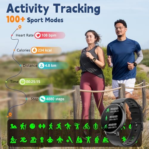 100+ Sports Tracking & Health Monitoring: This fitness tracker watch is equipped with motion sensors that can monitor your heart rate, steps, distance, and calories in real-time. It can also monitor your blood oxygen condition, and know your sleep quality by recording your deep sleep, light sleep, awake time. Record your fitness status, with over 100 daily exercise modes available, including indoor and outdoor activities, to meet your daily needs.
