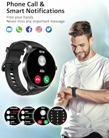 【Make/Answer Calls & Read Message 】-The smart watch features call functionality, allowing you to answer and make calls directly from your wrist. Connecting this smartwatch with your phone, Stay connected to SMS and APP messages(Text, Facebook, WhatsApp, Instagram, Twitter, etc.), never miss any important information to meet your daily needs.