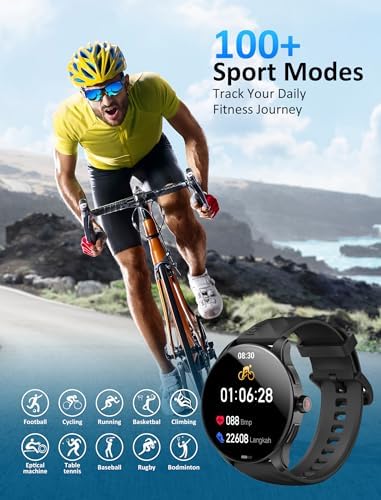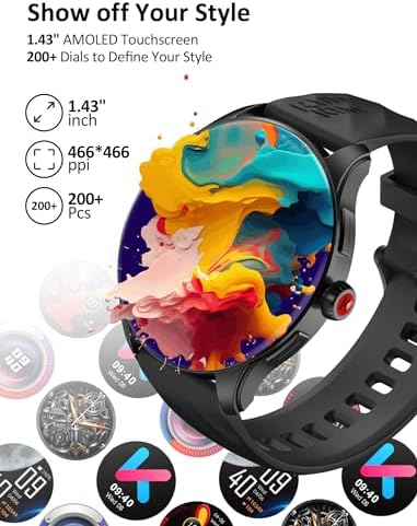 【1.43″ AMOLED Display & 100+ Sports Modes】- The smartwatch for men boasts an AMOLED full-screen touch display that delivers more realistic and vibrant colors compared to regular screens, offering enhanced visibility during the day. The smart watch for android phones also features over 100 sports modes for comprehensive exercise monitoring, including heart rate, step count, distance, calories burned, and exercise duration, providing valuable insights for your active lifestyle.