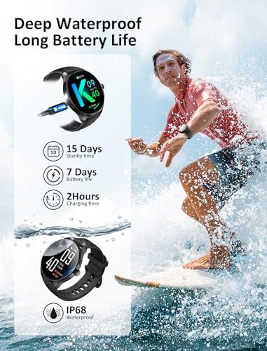 【IP68 Waterproof & Super Long Battery】This activity trackers smartwatches is designed with IP68 waterproof rating, so you can wear this watch with no worries while washing hands or sweating out. android smartwatch with 2 hrs of charging, 5-7 days of normal use, allowing you to spend more time enjoying the benefits of a smartwatch and less time worrying about battery life. (Actual utilizationrelated to the user’s usage)