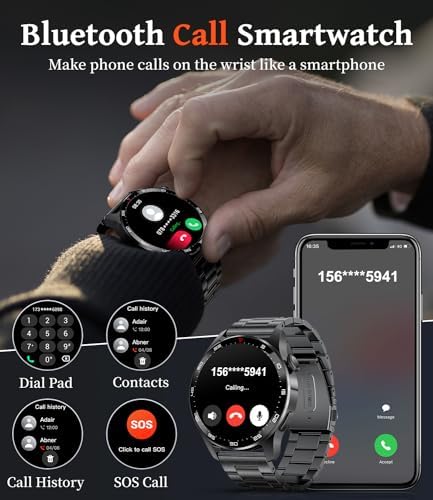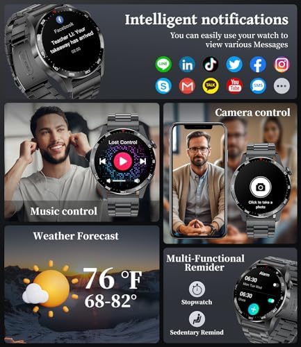 📞【Bluetooth Calling & Message Notification】The mens smart watch has a built-in microphone and HD speaker, when bluetooth is connected to your cell phone, you can dial/answer/hang up calls directly on it. In addition, the smartwatch can receive real-time notifications from social platforms (Facebook, WhatsApp, Instagram, Twitter, etc.). No more checking your phone frequently, you will not miss any important messages.