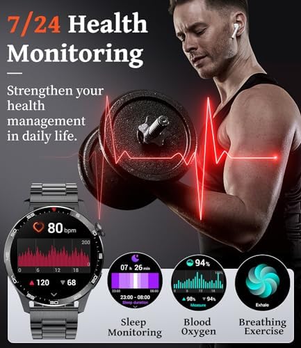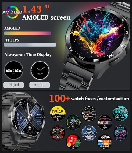 🌈【Why Choose AMOLED Screen? 】Smart watches for men is equipped with a 1.43-inch AMOLED color display with a resolution of 466×466, which delivers vibrant and vivid colors even outdoors. It is more power-saving and thinner than traditional LCD screen, which improves the wearing experience. The function of “Always-On-Display” means that the display is always online to supports resting screen to check the time.