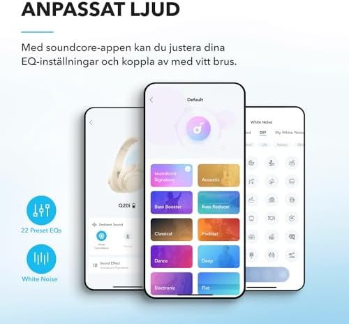 App for EQ Customization: Download the soundcore app to tailor your sound using the customizable EQ, with 22 presets, or adjust it yourself. You can also switch between 3 modes: ANC, Normal, and Transparency, and relax with white noise.
