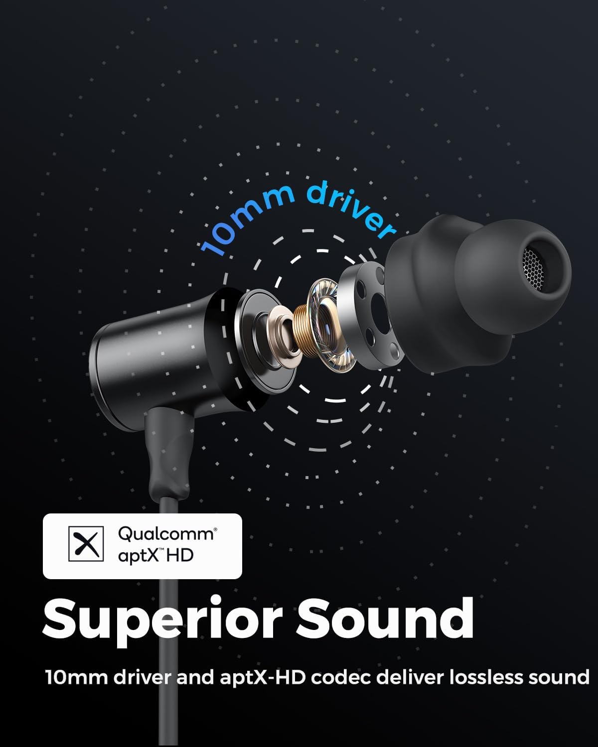 [Stereo Sound. Immersive Bass] – Adopt high-end Qualcomm QCC3040 chip and Bluetooth 5.2, built-in 10mm large driver, along with advanced aptX-HD codec to deliver superior stereo sound with powerful bass under stable and smooth connection. ( This one is USB Type C Charging, Upgrade one)