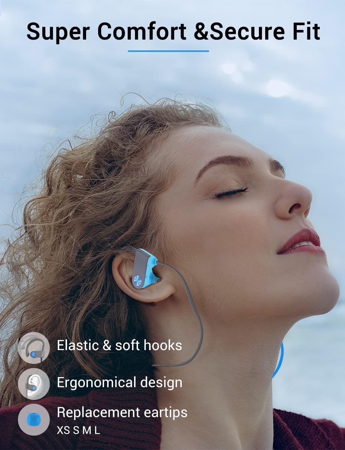 Dual Waterproof Protection: With IPX7 waterproof rating and interior nano-coating technology, our workout headphones can effectively withstand sweat or rain, making wireless headphones functions well and safely during workout.