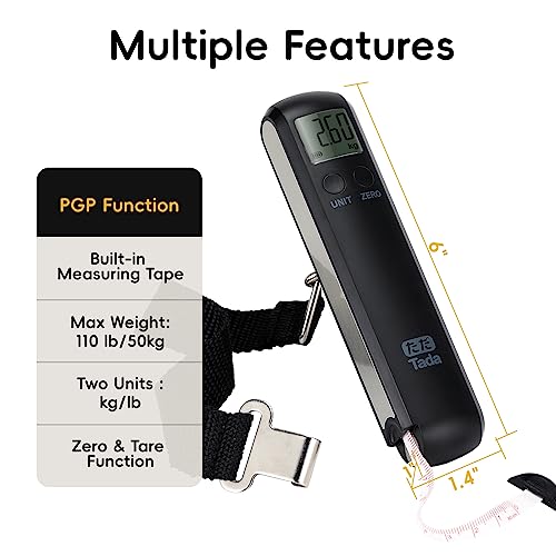 TADA 110 lbs Travel Luggage Scale Battery-Free Portable Digital Hanging Hand Baggage Scale for Travel Suitcase Weight Scale with Built-in Measuring Tape