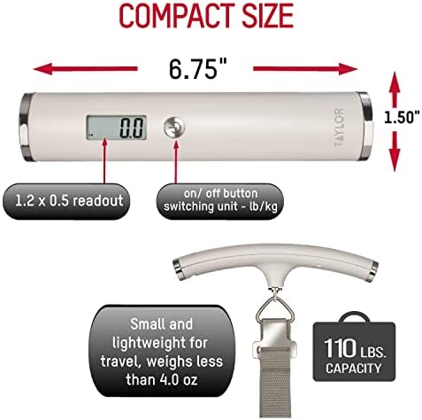The Taylor Luggage Scale is a portable and lightweight yet heavy-duty travel accessory designed for all travelers. Reduce the stress of surprise overweight luggage fees at the airport by weighing before you go! Clip the strap onto the handle of your luggage and lift it with either one or two hands. When ready, the scale will beep and display the weight of your luggage on a bright backlit display. To reset, press the ON/OFF button again. Weigh precisely in 0.1 lb / 0.1 kg graduations up to 110 lb / 50 kg. The Taylor luggage scale also includes a long-lasting lithium battery. If you do a little shopping, don’t forget to pack the luggage scale to avoid fees on the way home since the scale is small, portable, and durable. Take it on your adventures worldwide, or store it without the hassle of added bulk.
